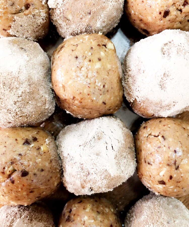 These energy-filled protein balls are the key to satisfying my sweet tooth as well as adding a little protein to my day! I like to use a chocolate protein powder in these, but you can also substitute 2 Tbsp of cocoa powder for the protein powder. They will still have plenty of protein from the peanut butter.